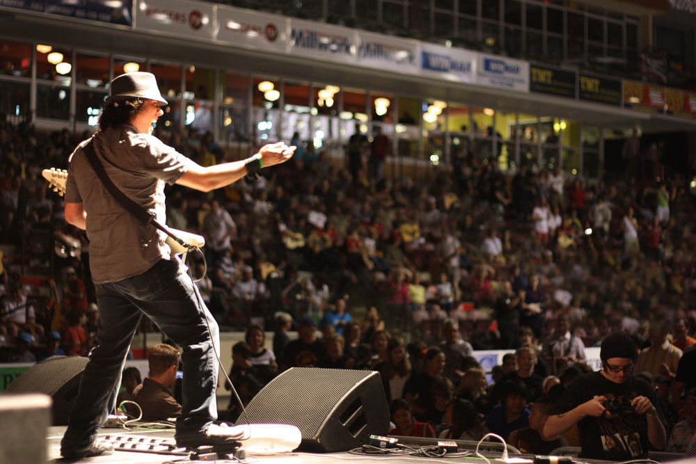 While in university, Juan formed the alternative rock band, Emma Hoo, as the lead singer and guitarist. Three months later, the band was offered a record deal, which resulted in the release of their first album. Emma Hoo quickly gained a cult following, playing many major festivals and sold out concerts, Juans next project, La Universal, was an original, genre-busting rock band with a unique fusion of rock, electronica, rap, and funk.